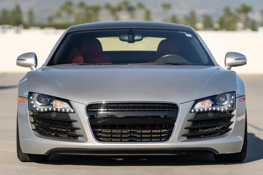 THIS… is a 2009 Audi R8 Coupe, finished in Ice Silver Metallic with an Audi Exclusive Red interior.